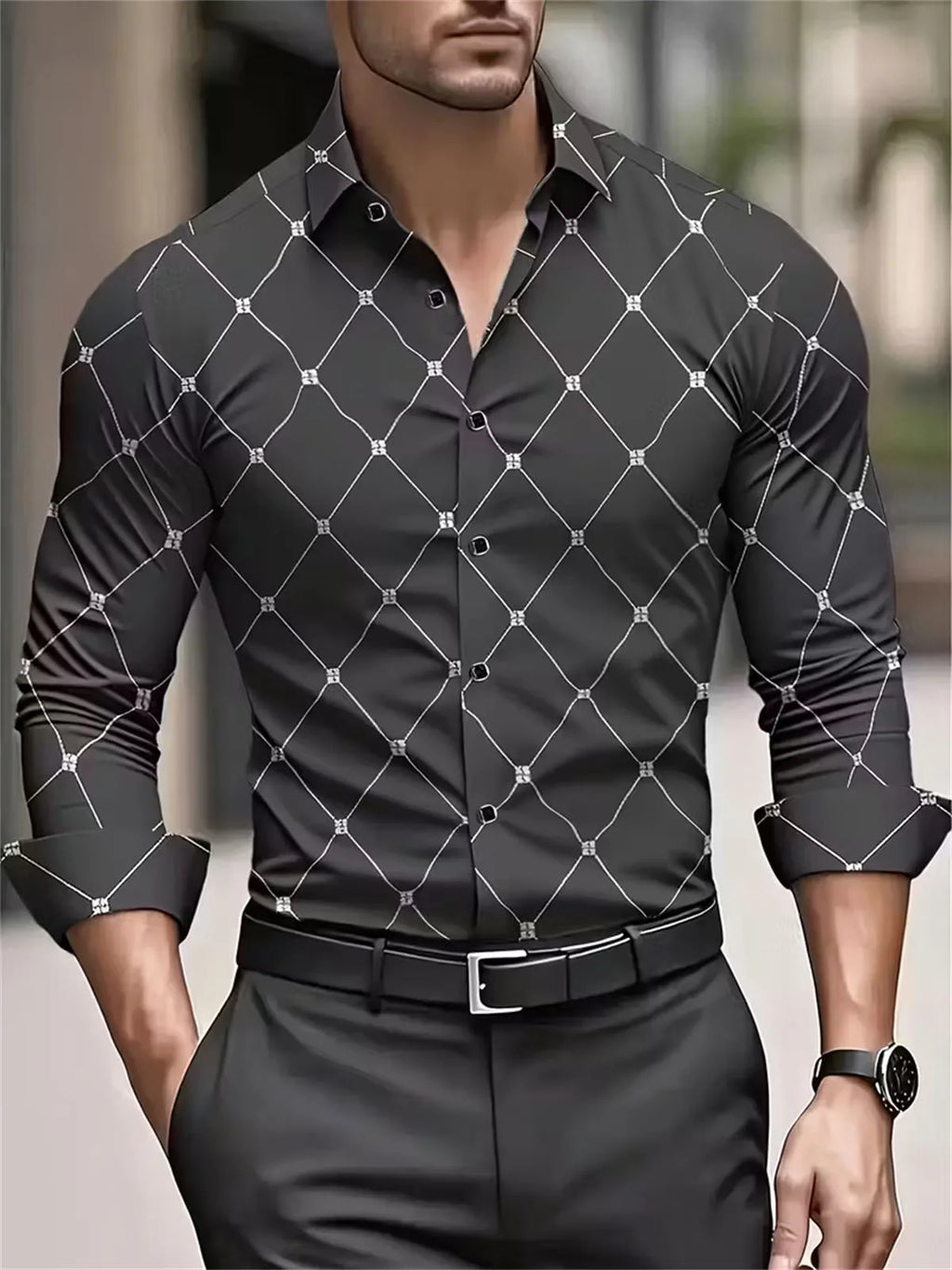 Descubra a sofisticação e o estilo incomparável com nossa camisa masculina de manga longa, adornada com uma estampa geométrica única. Este item essencial do guarda-roupa masculino é projetado para transformar seu visual, proporcionando uma presença marcante em qualquer ambiente, seja no escritório ou em eventos casuais.
