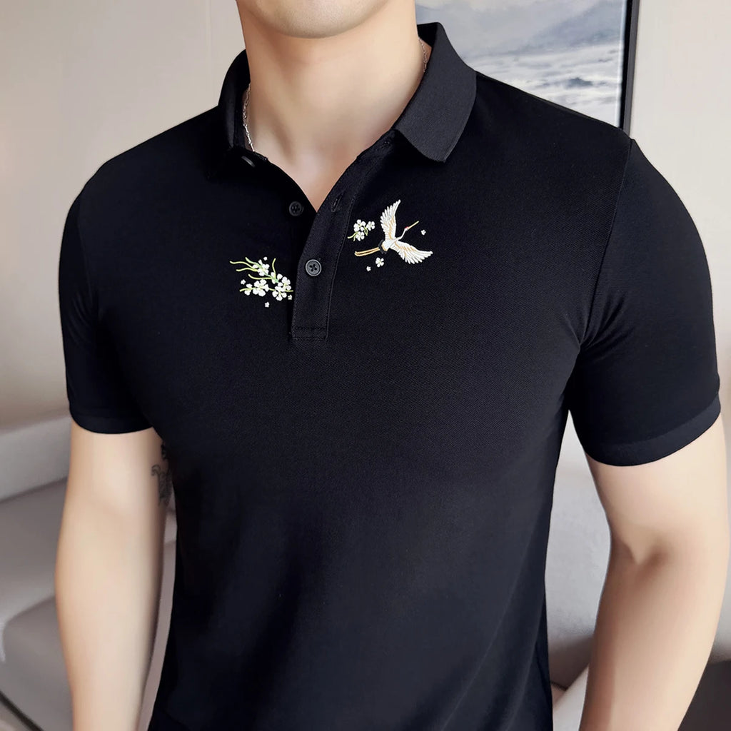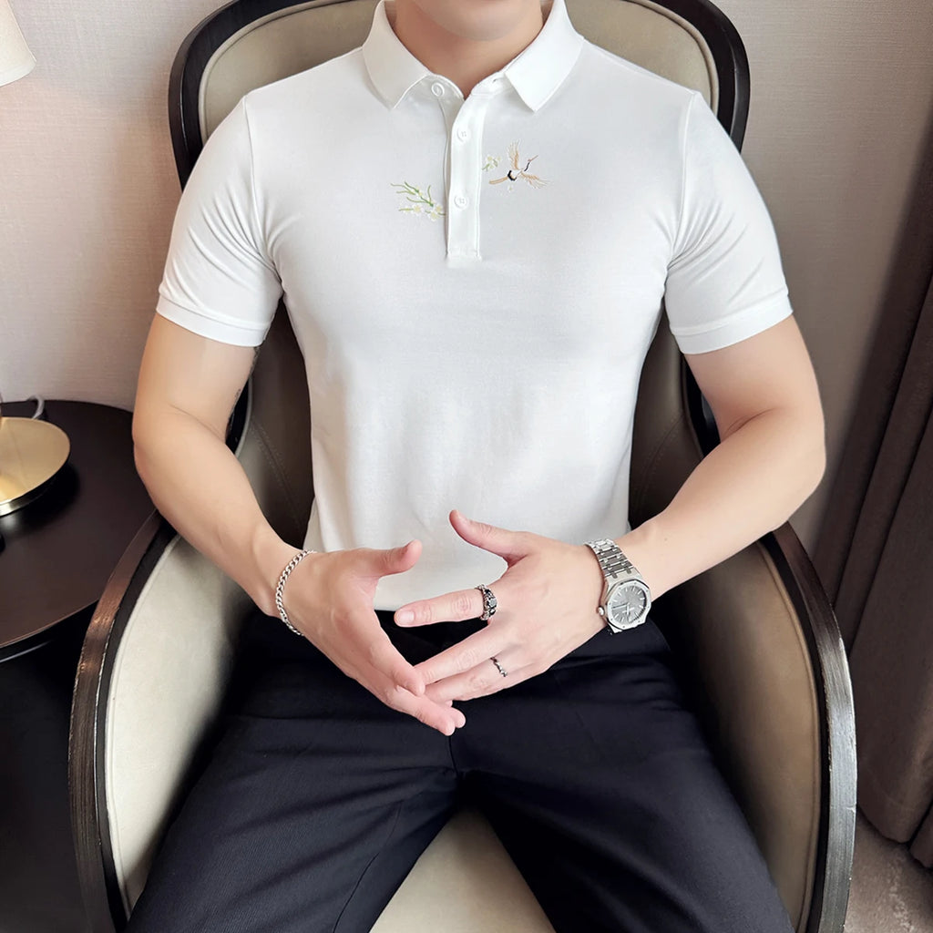 Camisa Polo Masculina Bordada Slim Fit Verão 2025