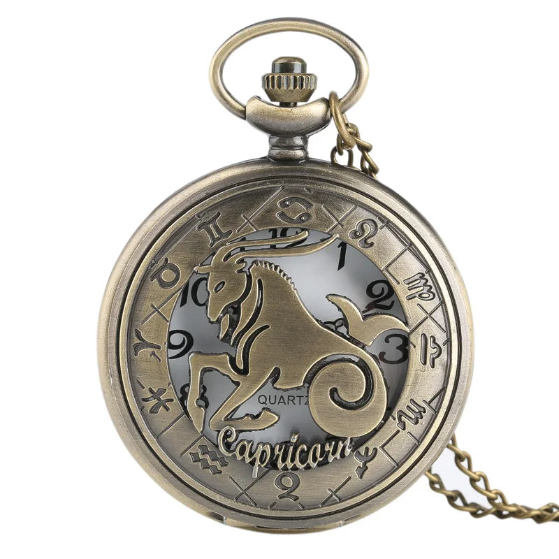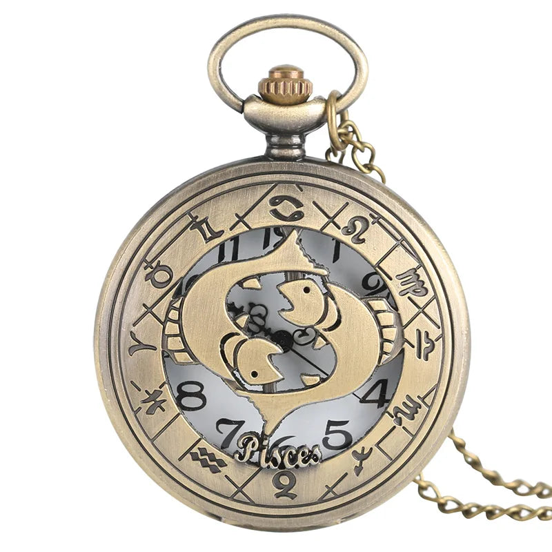 Relógio de Bolso Zodíaco Retro em Bronze